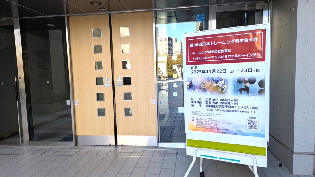 11月22日、23日の2日間、早稲田大学東伏見キャンパスにて行われた、『第38回日本トレーニング科学会大会』に参加してきました!