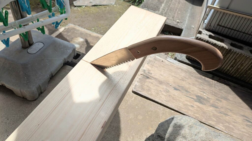 電動丸鋸とかあると直線に切断しやすいし体力も必要なくて便利なんですけどね。手で頑張ります。
