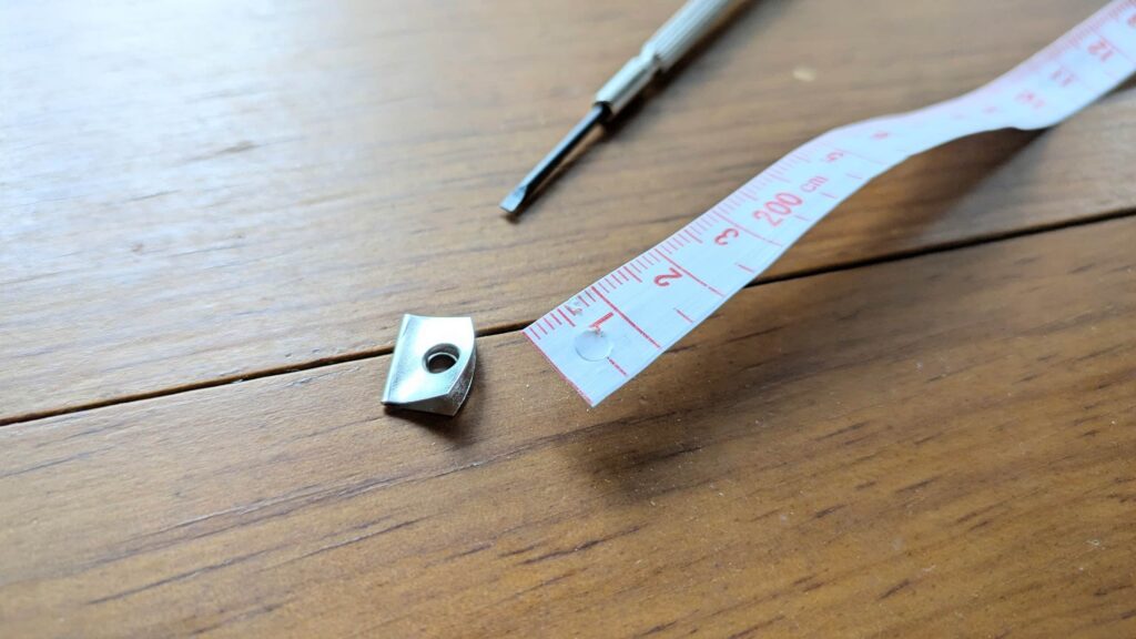 続いてメジャーです。今回購入した物には片側だけ留め金が付いているので、これは外してしまいます。